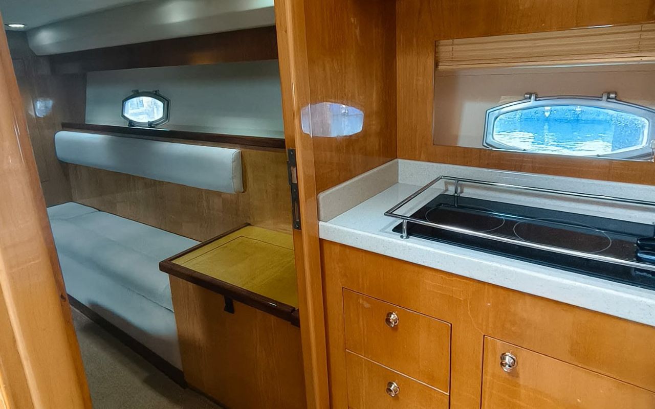- Fully equipped galley with fridge, microwave, and cooking facilities