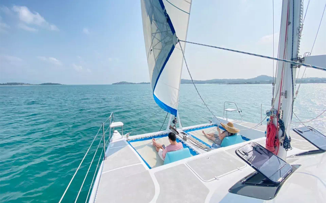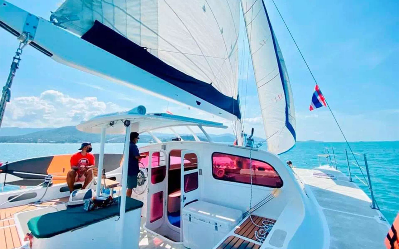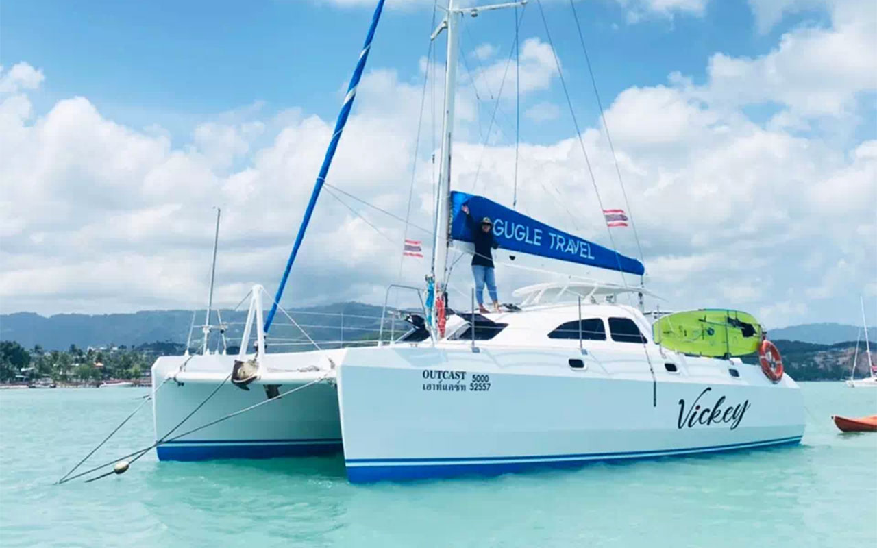 Embark on an unforgettable journey aboard the Vickey Catamaran, exclusively offered by Oceans Elite Charters. This 36-foot sailing catamaran is designed to provide a perfect blend of comfort and adventure, making it an ideal choice for families, friends, or couples seeking a private maritime experience around Koh Samui and its neighboring islands.
